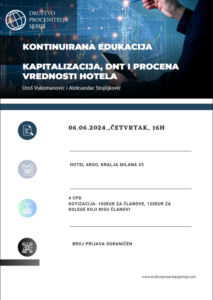 pozivamo vas da se prijavite za predavanje iz Kontinuirane edukacije. Prijave pošaljite na mail: obuka@drustvoproceniteljasrbije.rs Broj mesta je ograničen.